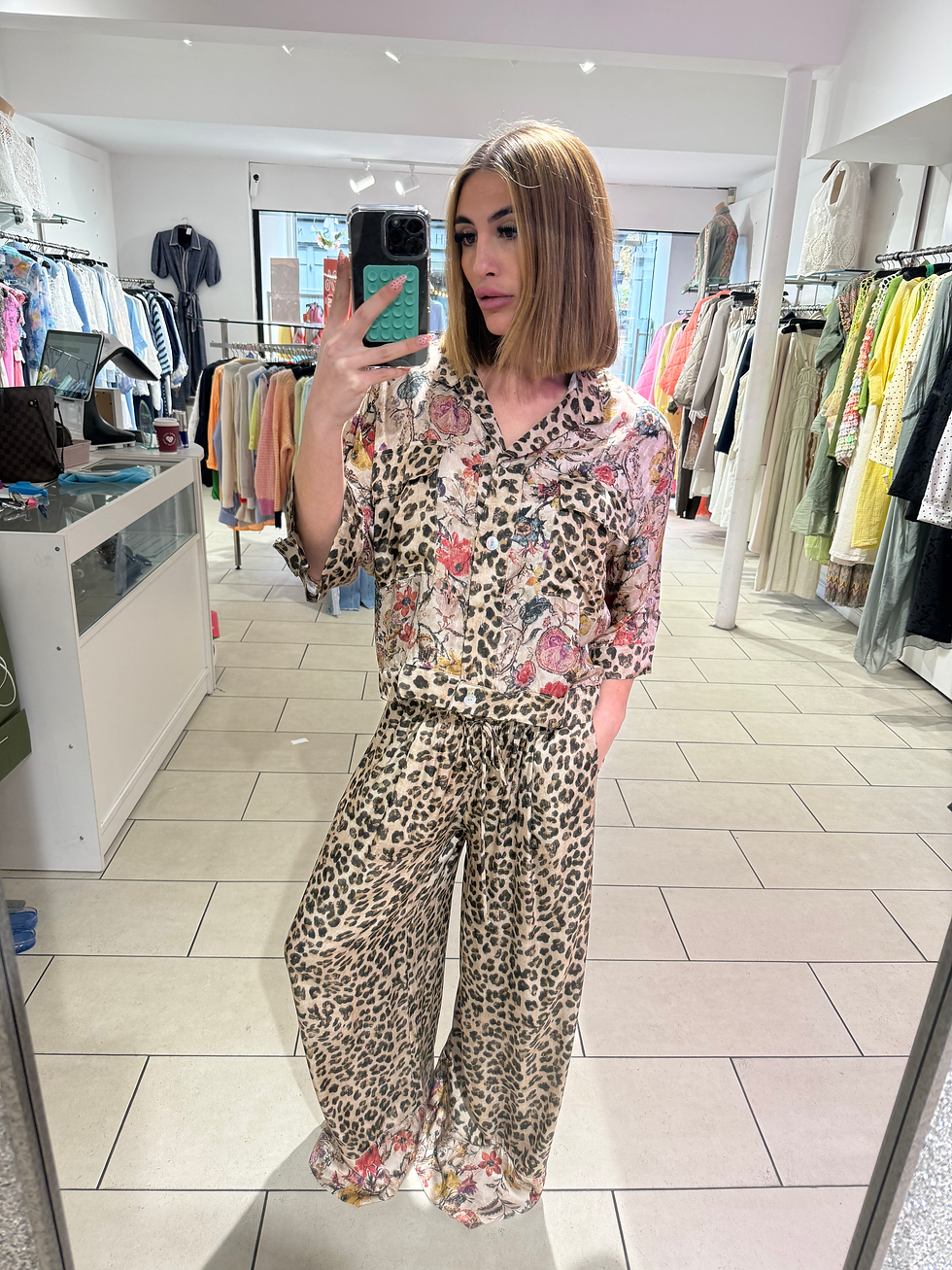 Leopard Floral Bomber Style & Wide Leg Trouser Set